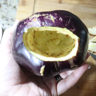I started with the widest eggplants I could find as my goal was to hollow them out and I still needed some substantial "eggplant" left!