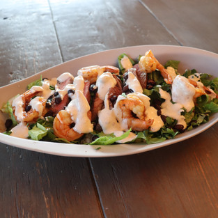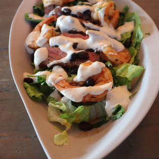 I literally whipped this up in 20 minutes! But you wouldn't know it to taste it! I had all the elements of a good rice bowl... obviously rice, in my case organic white rice... romaine lettuce, some cilantro from my garden, black beans Cajun prawns and steak!